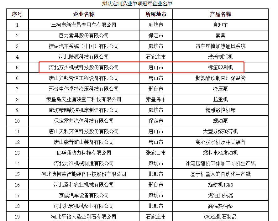 上一篇:河北萬杰機械科技股份有限公司2021年7月19日又被國家工業(yè)和信息化部認定為國家專精特新小巨人企業(yè)!